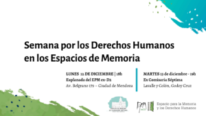 06-12-2022 | El Espacio para la Memoria y los Derechos Humanos ex-D2 y el Espacio de Memoria ex Comisaría Séptima realizarán actividades en el marco de la semana por los Derechos Humanos. Los espacios de memoria de Mendoza realizarán actividades artísticas y culturales en el marco del Día Internacional de los Derechos Humanos. El 12 será en […]